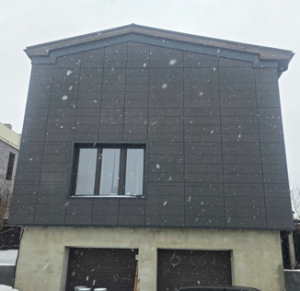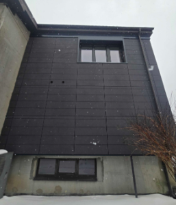 - Bio-based (BIO-Polyurethane foams) ventilated façade F1 (46.1 m2), F2 (33.1 m2), F3 (24.3 m2) (prefabricated façade panels)