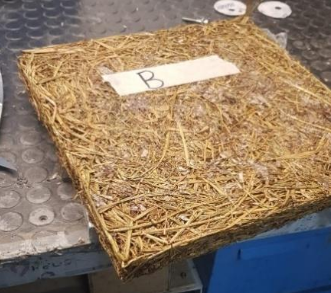 Better results in term of easy handling, stability and compactness of the panels has been achieved with a mix of 60% rice straw and 40% posidonia in weight.